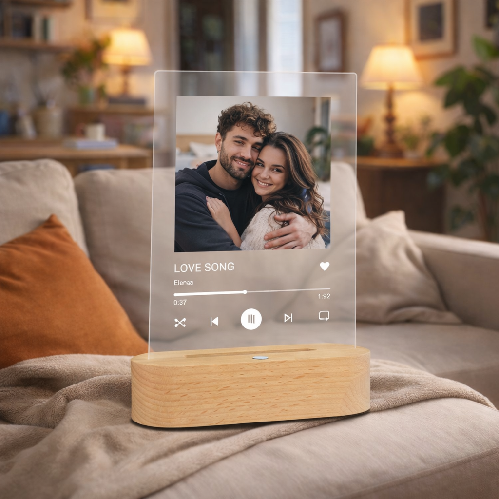 Skapa ett minne för livet med en musikkylta personligt utformad med din bild och din favoritlåt. Både dekorativ och känslosam för hemmet eller som present.